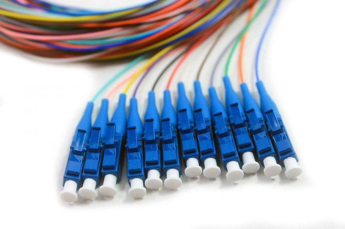 FIB pigtails feature low insertion loss, low back reflection, and color-coded 900um tight buffered fibers. Stock pigtail configurations are available with your choice of LC, SC or ST fiber optic connectors and a variety of endface polishes. Available in 6-packs or 12-packs at standard 3 meter lengths.