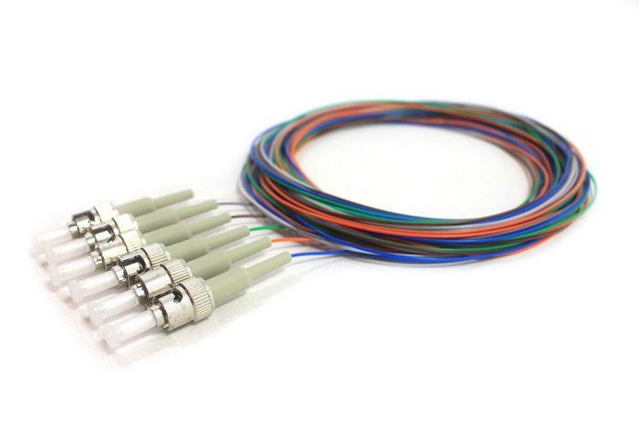 FIB pigtails feature low insertion loss, low back reflection, and color-coded 900um tight buffered fibers. Stock pigtail configurations are available with your choice of LC, SC or ST fiber optic connectors and a variety of endface polishes. Available in 6-packs or 12-packs at standard 3 meter lengths.