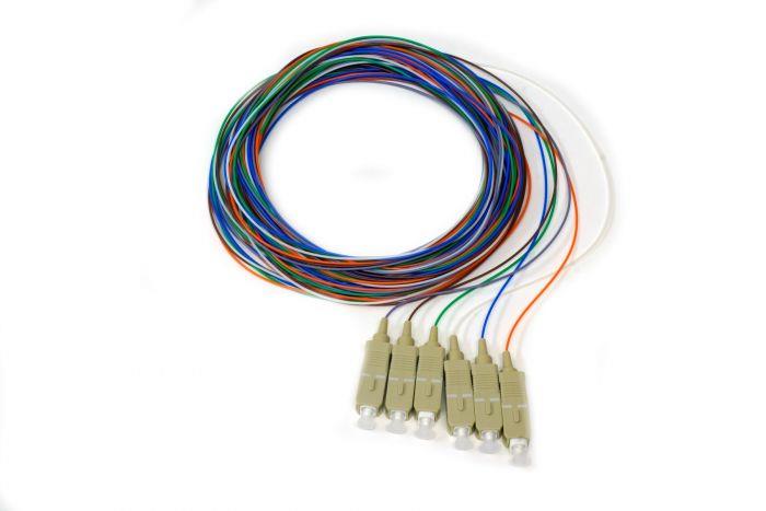 FIB pigtails feature low insertion loss, low back reflection, and color-coded 900um tight buffered fibers. Stock pigtail configurations are available with your choice of LC, SC or ST fiber optic connectors and a variety of endface polishes. Available in 6-packs or 12-packs at standard 3 meter lengths.