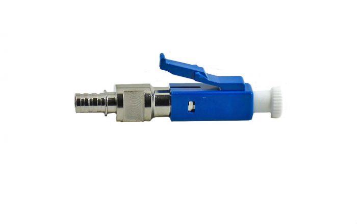 The Fiber Optic LC Connector licensed by Lucent Technologies provides a pull-proof design and small size perfect for high-density applications. This Fiber Optic LC Connector features a 1.25 mm zirconia ferrule that is half the size of the standard SC ferrule. The LC Fiber Optic Connector provides good performance and is favored for both singlemode and multimode fiber optic applications. The LC Fiber Optic Connector also incorporates a unique latching mechanism that provides stability in system rack mounts.